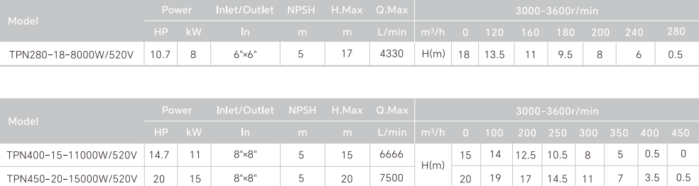 The 8inch water pump can meet big farmland irrigation with the max flow 320m3/h and max head of 15m.