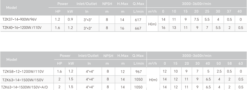 The pump adopts Semi- open impeller with a speed of 3000-3600rpm.